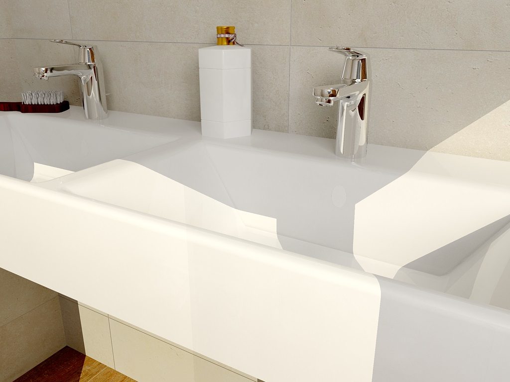 Voor fabrikanten maak ik visualisaties van hun nieuwe producten. Vroeger werd er een studio-badkamer compleet ingericht met de nieuwe artikelen en vervolgens door een fotograaf gefotografeerd.
